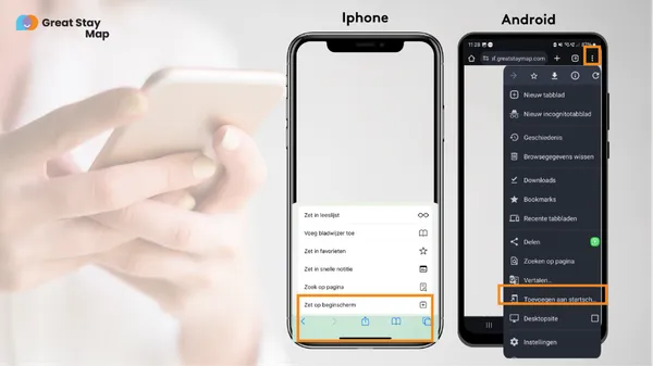 Wilt u tijdens uw verblijf alle informatie makkelijk kunnen vinden, zonder steeds de url op te zoeken? Sla deze website dan op als app. Met één druk op de knop heeft u dan toegang tot alle tips. U hoeft geen extra app te downloaden, het is slechts een 'foefje' om snel naar een website te gaan. Hierna kunt u dit met elke website doen die u handig vindt.